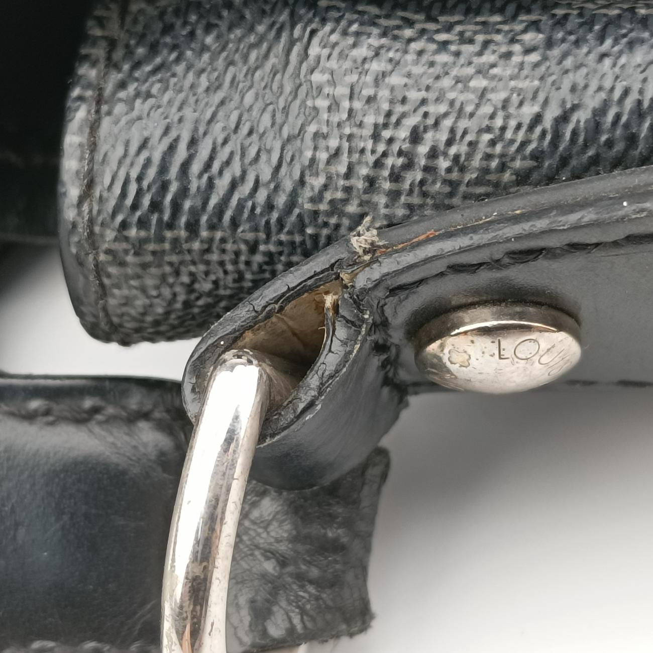 全体の中度使用跡、全体の補色跡、金属中度摩耗肩ベルトの油辺の中度摩耗、軽度亀裂、内側の軽い汚れ、肩ひもの軽度亀裂;