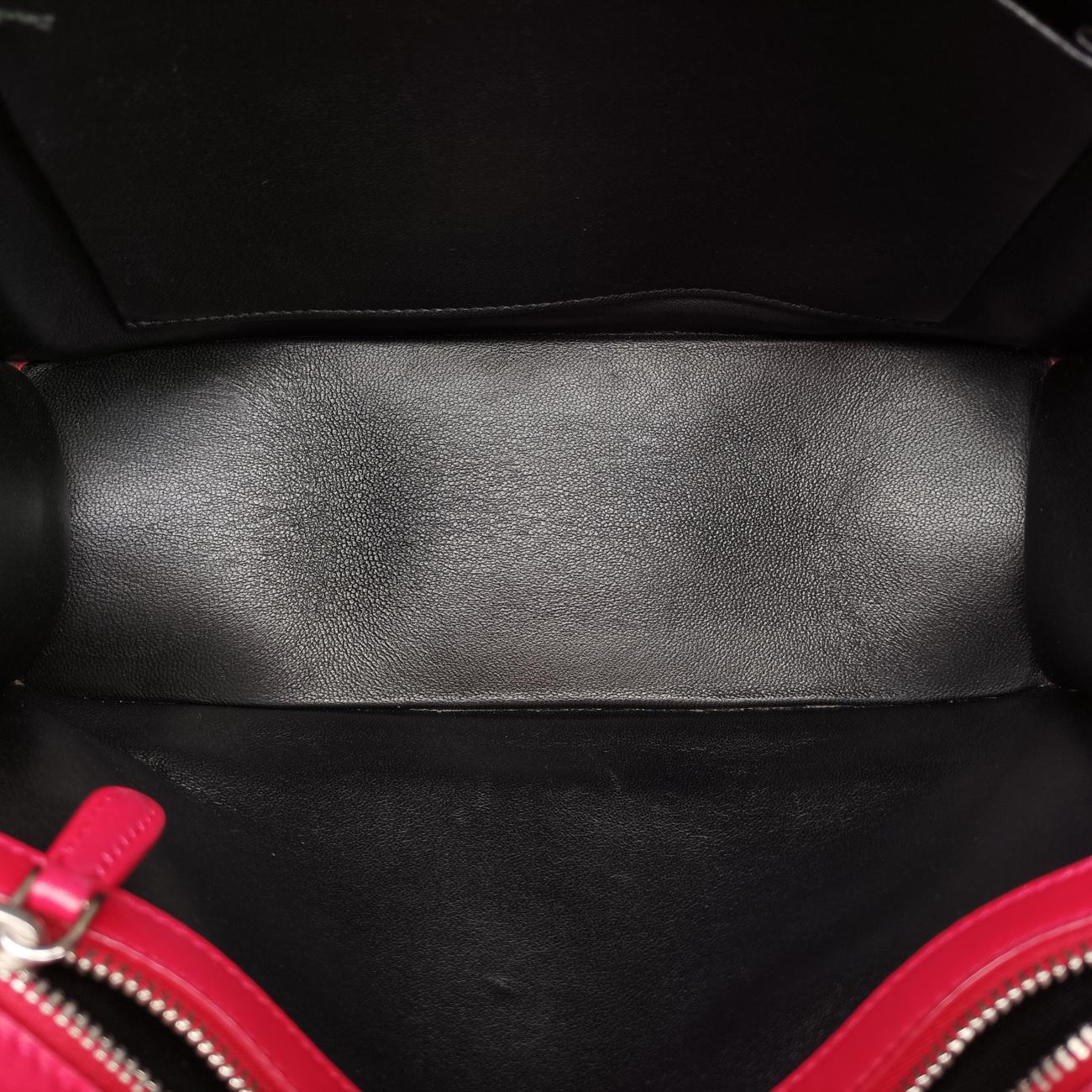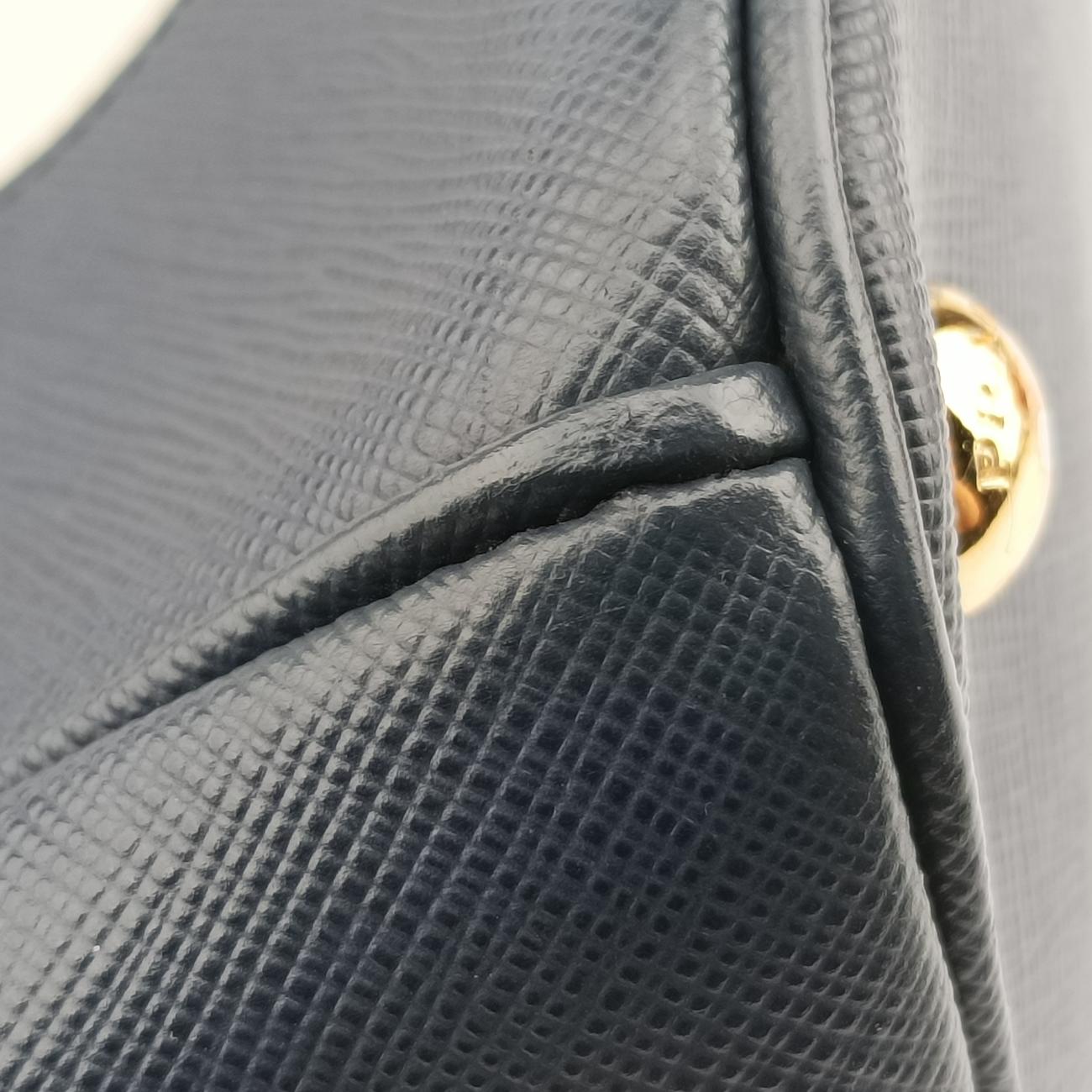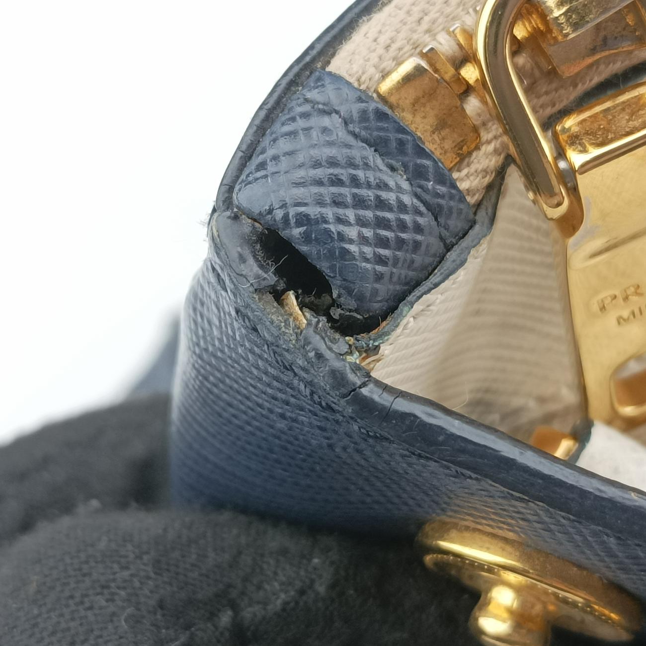 全体の軽度使用跡、辺角、背面補色跡、肩ベルトの油辺の中度亀裂、手提げ油辺の軽度亀裂、金属の軽度摩耗、内側油辺の軽度摩耗;