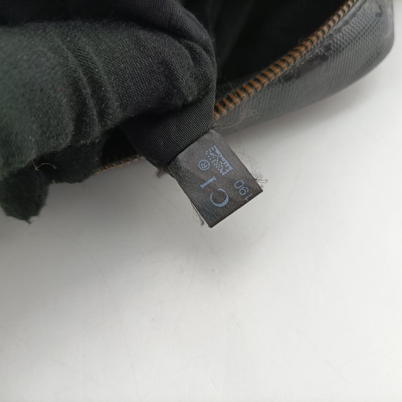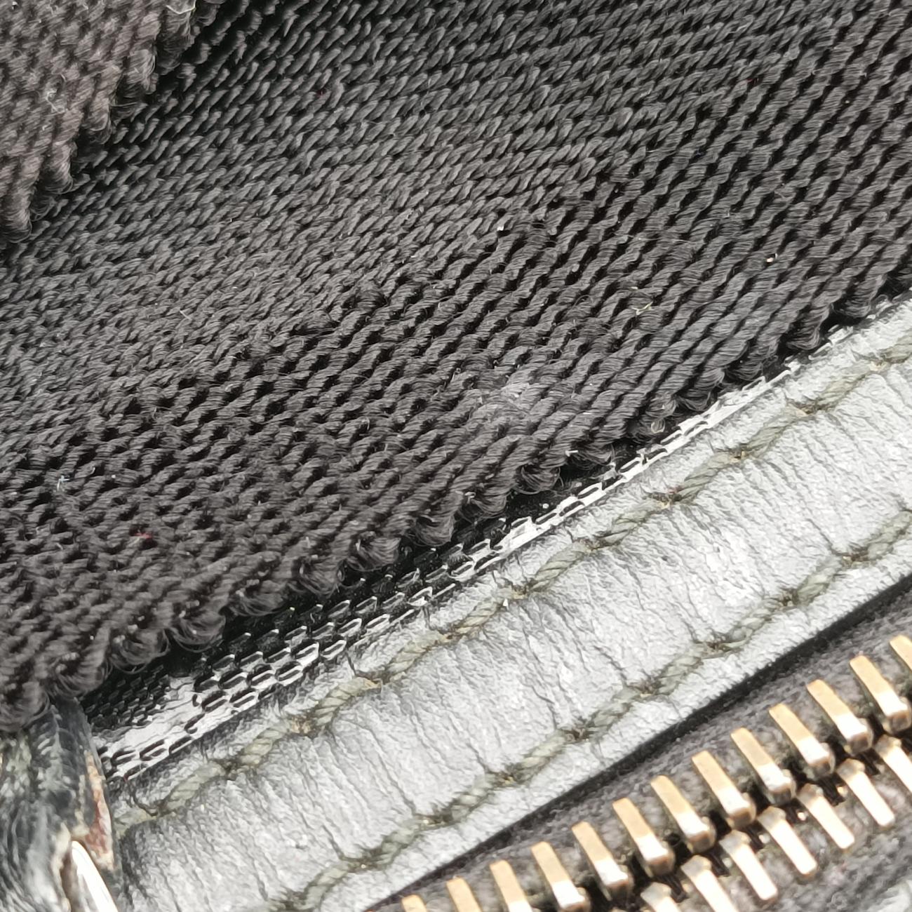 全体の中度使用跡、バッグの中性度が摩耗し、バッグのLOGOに透明な装飾物が欠けている、ファスナーバッグの開口部に中性度の亀裂、内側の中等度の汚れ、四角中性度摩耗、油辺の中度亀裂、肩ひもの中程度の使用跡;