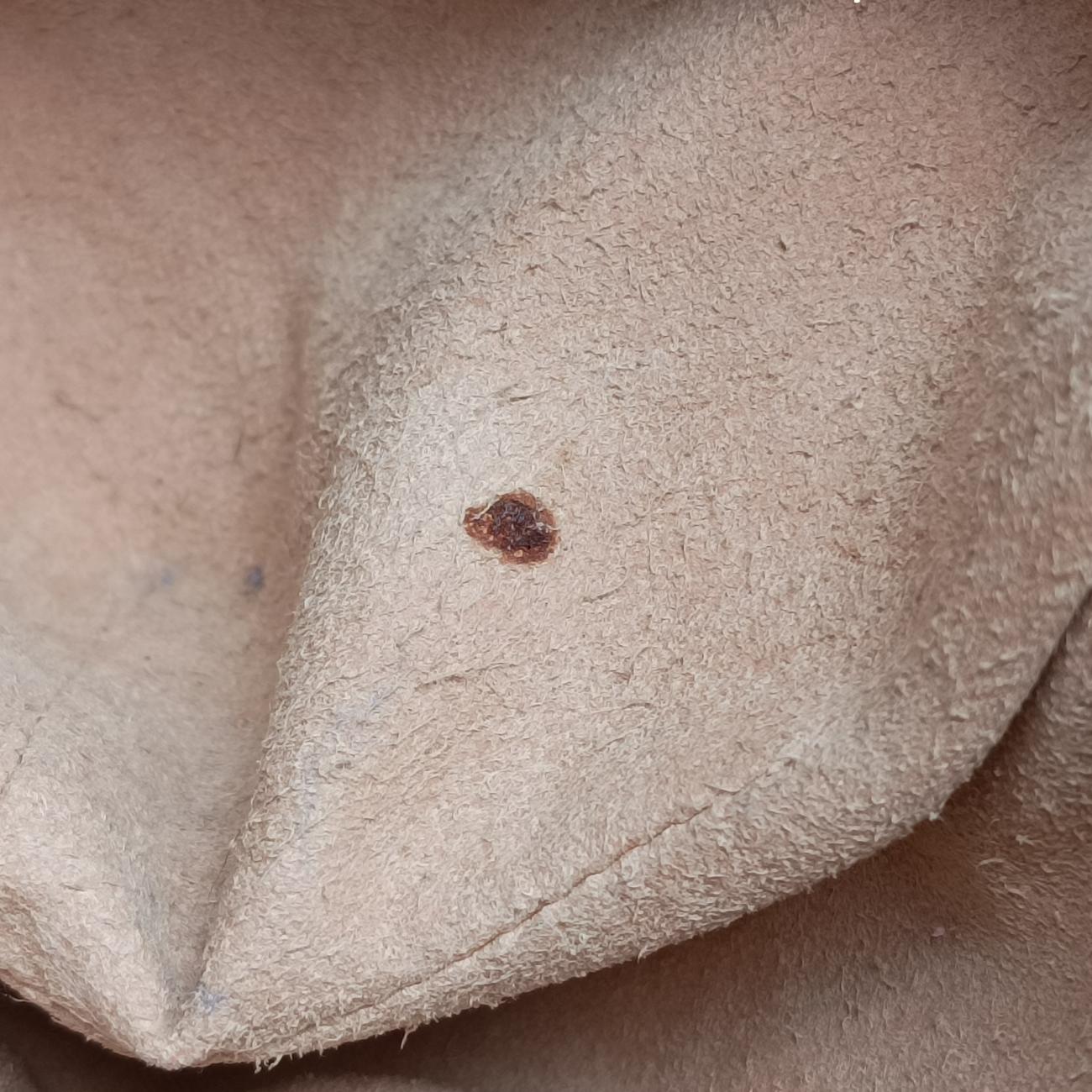 全体の軽度使用跡、被覆皮質の軽度な傷、辺角、金属の軽度摩耗、包口油辺、包口ファスナー油辺の中性度が割れ、摩耗、肩ベルトの油辺が軽度に裂けた、内側の軽い汚れ、毛羽立ち;