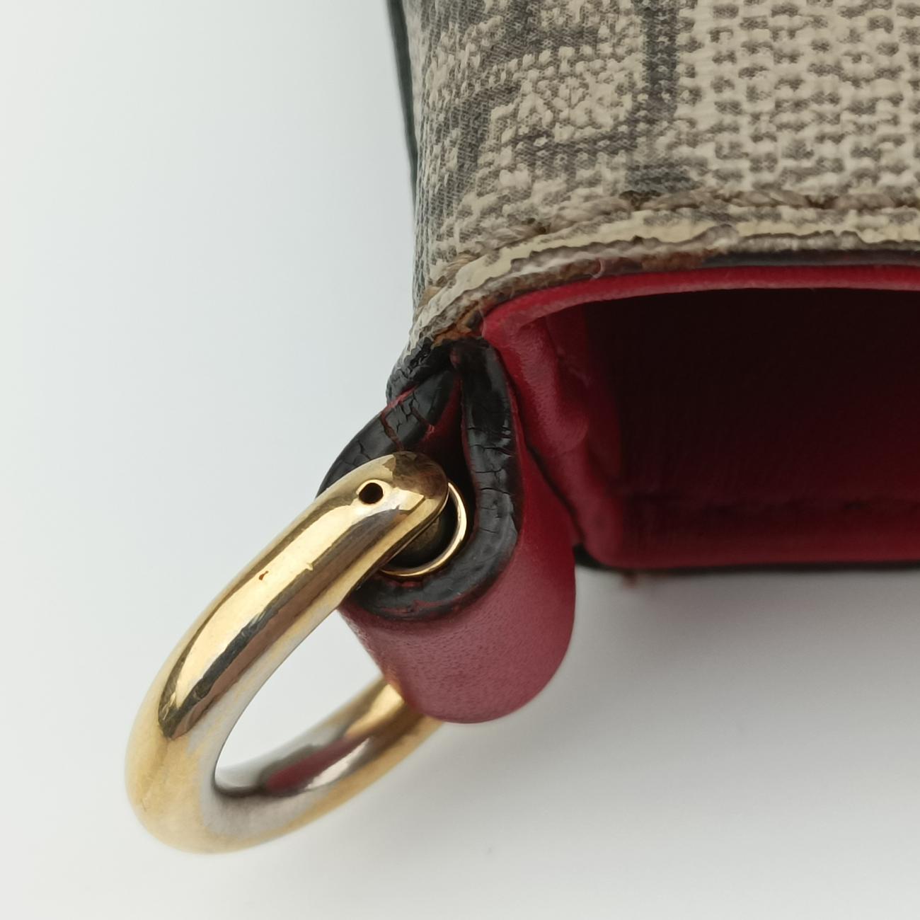全体の中度使用跡、辺角の軽度摩耗、金属の軽度摩耗、肩ベルトの中度が開線し、摩耗する。内に軽度の使用跡がある、被覆中度変色;