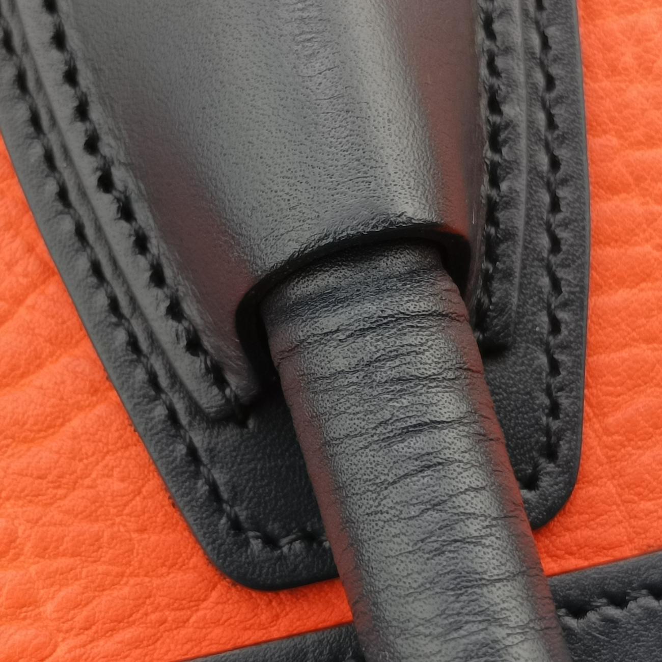 セリーヌCelineラゲージミニショッパー オレンジ×ブラック×ベージュ レザー S-CU-4124