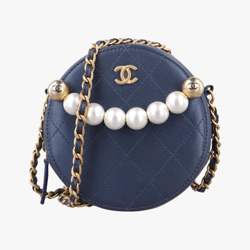 シャネルChanelラウンド パールス ネイビー ラムスキン AP0999 29212582