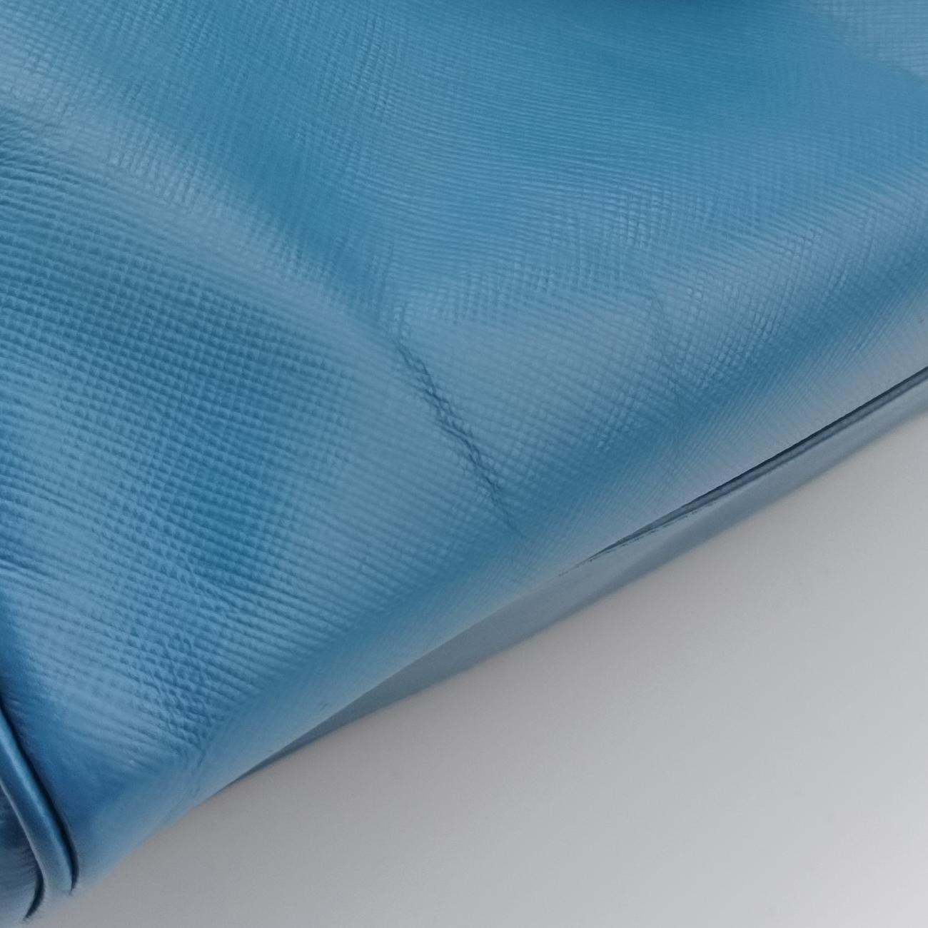 プラダPradaラックス ボウラーバッグ ブルー サフィアーノレザー 31/F