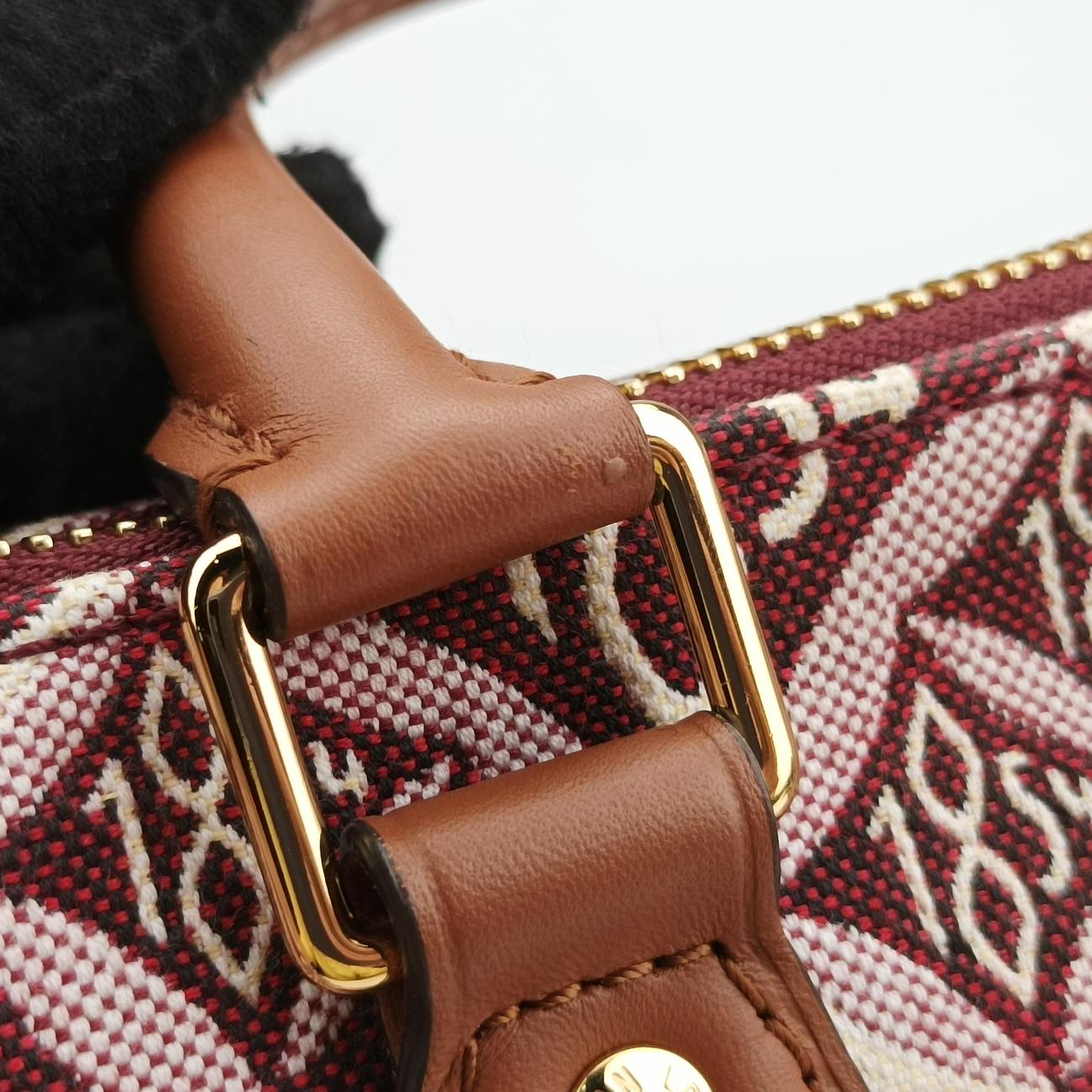 ルイヴィトンLouis VuittonSINCE1854 スピーディ バンドリエール 25 ボルドー×ベージュ モノグラムジャガード M57231 DU2290